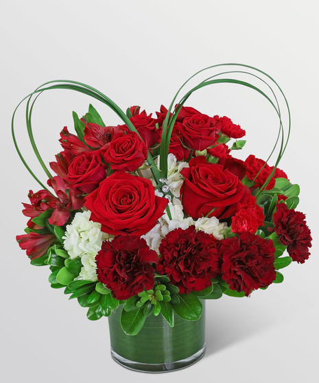 Heart to Heart is a very romantic gift! This fresh flower design is created with roses, alstroemeria, and carnations in a leaf-lined vase. Whether you're looking for a gift for your Valentine or just to show someone how much you care, this design made up of red and white blossoms with a natural foliage heart accent makes it an exceptional gift for Valentine's Day. Whether you're looking for a gift for your Valentine or just to show someone how much you care, this romantic bouquet will surely convey your feelings.