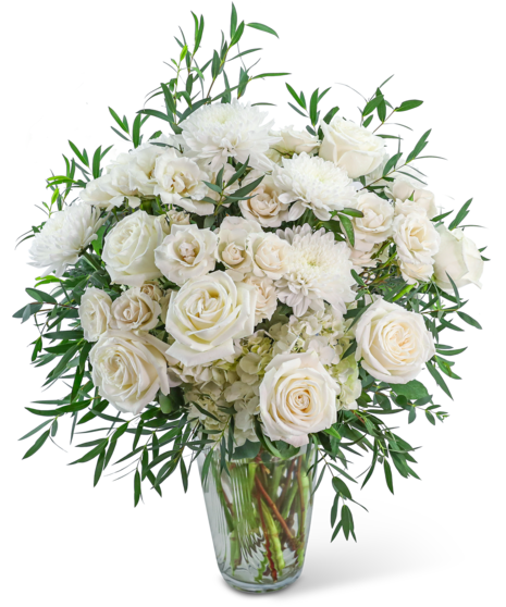 Soft Blush is an exquisite floral arrangement featuring roses, hydrangea, Cremons, and premium foliage in a clear glass vase. As your local florist offering reliable flower delivery, this arrangement of white and green flowers is the perfect gift to commemorate a birthday or anniversary, exuding beauty and sophistication.