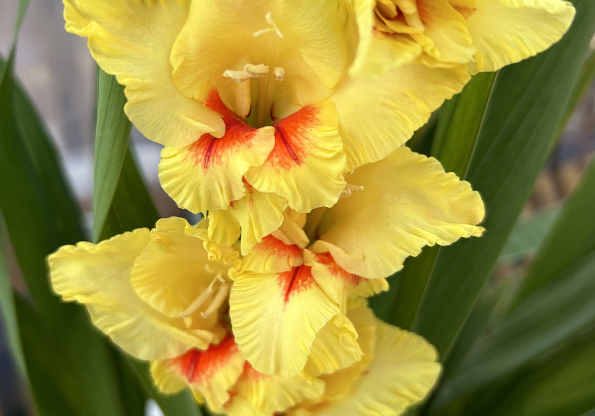 Gladiolus blooms are funnel-shaped and usually range from 2 to 4 inches wide. Their sturdy stems allow them to stand tall in any arrangement, whether as a focal point in a vase or as part of a larger floral display. Though they're bold and striking, gladiolus flowers are also incredibly versatile, pairing beautifully with a variety of other blooms and greenery.